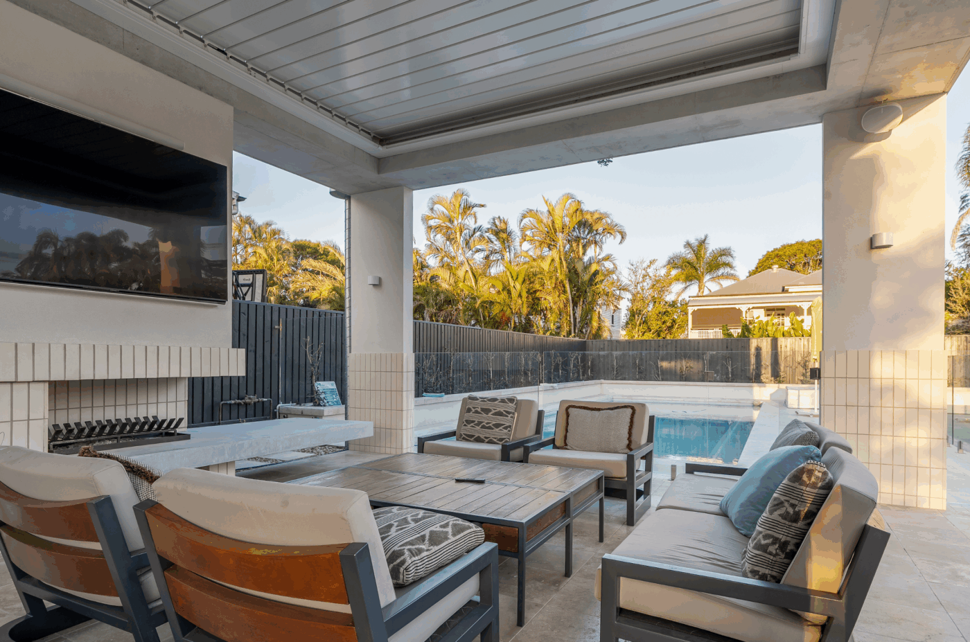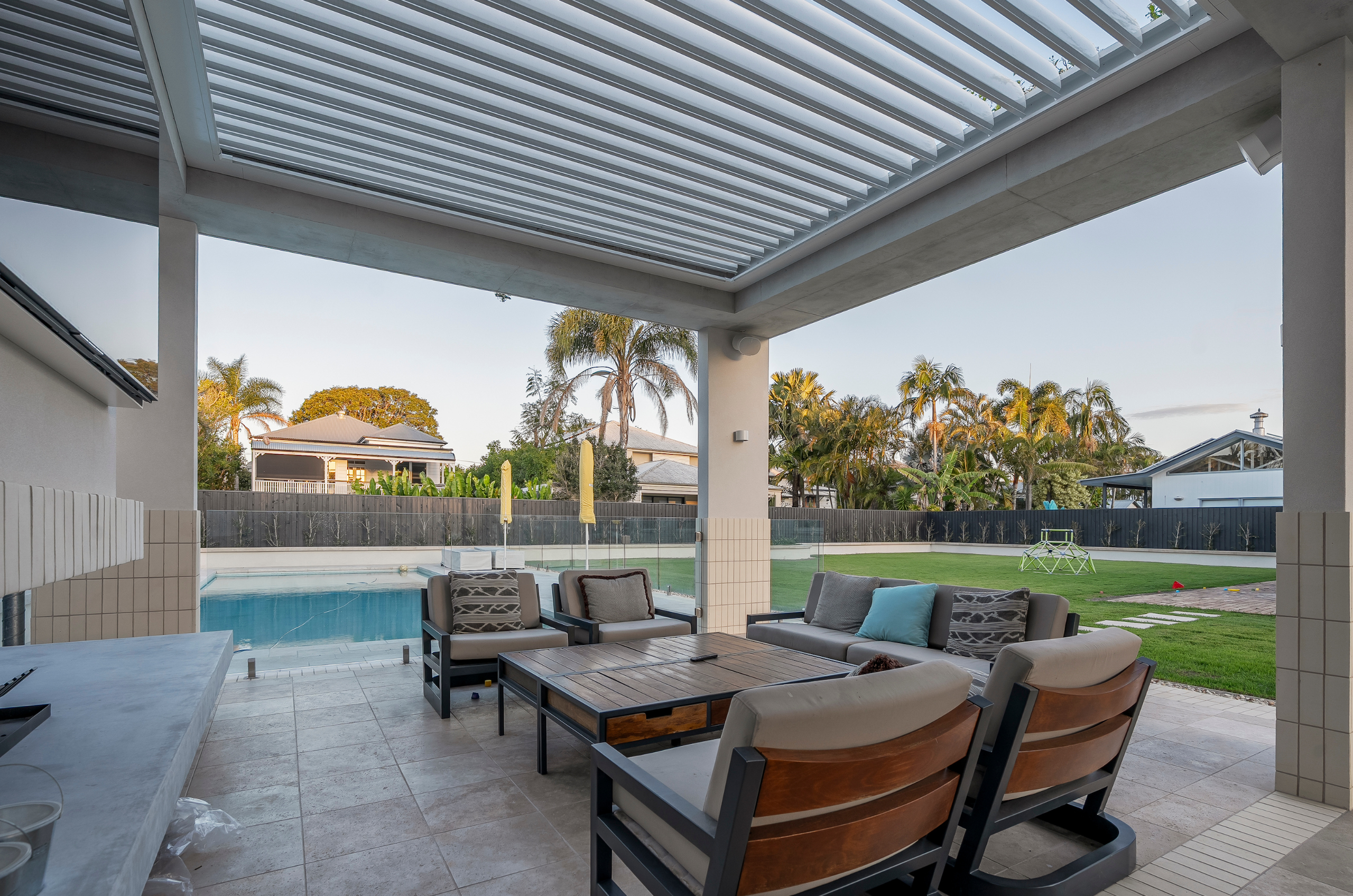 Elevate your outdoor space with a premium operable louvre roof that balances modern architectural design with a durable all-weather system. Adjustable aluminium louvres offer precise control over sunlight, providing shade and natural ventilation. The integrated drainage system provides reliable protection from rain and weather. Perfect for residential and hospitality projects, this operable louvre roof maximises outdoor functionality, enhances alfresco living, and creates a comfortable dining experience.