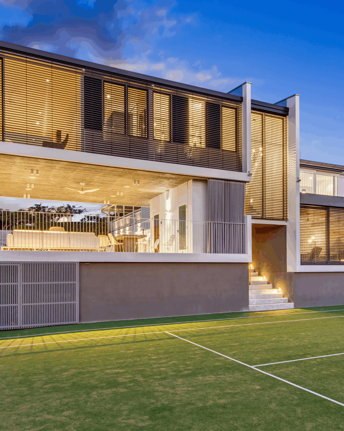 This beautifully restored Queenslander on a unique double block was transformed into a modern family haven, complete with tennis court and pool. Dove Industry seamlessly integrated high‑performance Vental operable external louvres across the western facade, coupled with Somfy control‑automation, to stabilise internal temperatures year‑round and manage light, glare and solar heat gains.